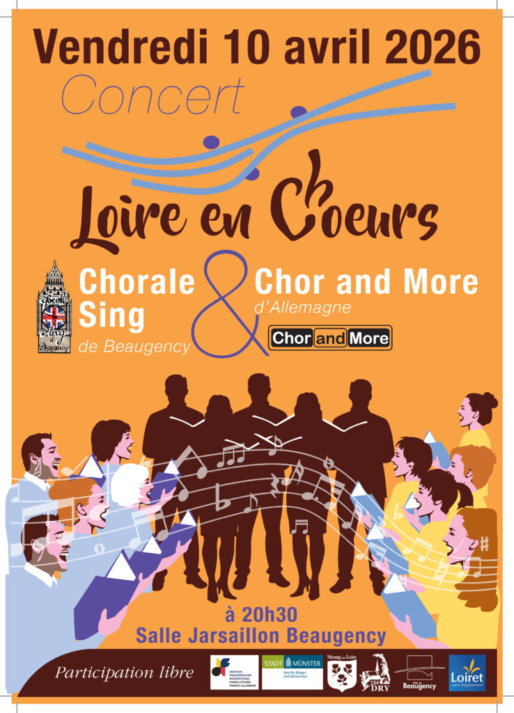 Concert vendredi 10 avril à l’espace Alain Jarsaillon à Beaugency avec la chorale Sing et la chorale Chor and More